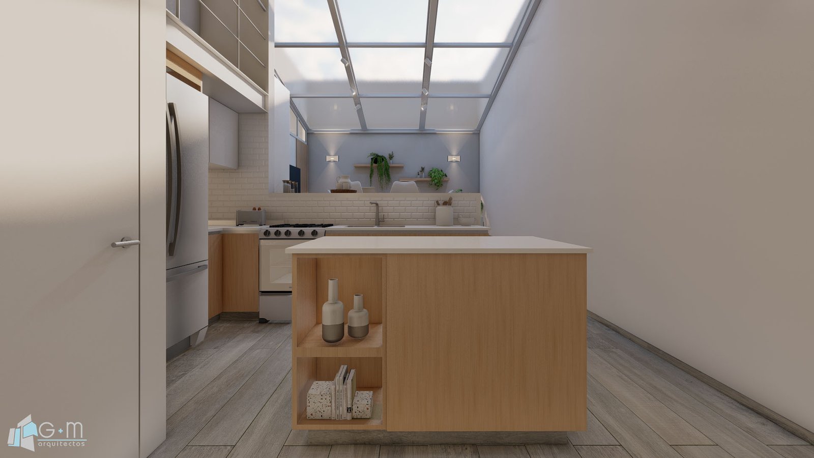 Se reformó un triplex en su totalidad. En la planta baja el pedido del cliente fue integrar un patio techado a la vivienda. Se decidió ubicar el comedor en este patio para poder tener un living de mayores dimensiones. Se cambiaron los pisos del comedor, se agregó iluminación y mobiliario a medida. A su vez se modernizó la cocina y se optimizó el espacio de mesada y guardado. Se utilizaron colores claros y madera para lograr calidez. También se modernizó el toilette.