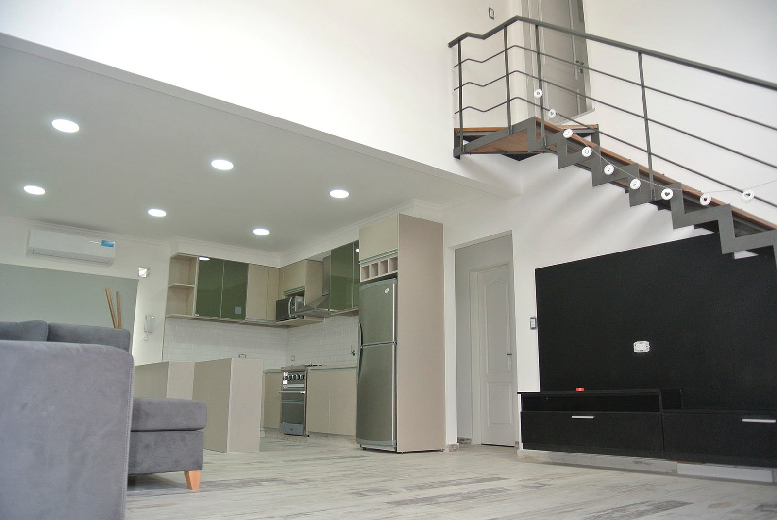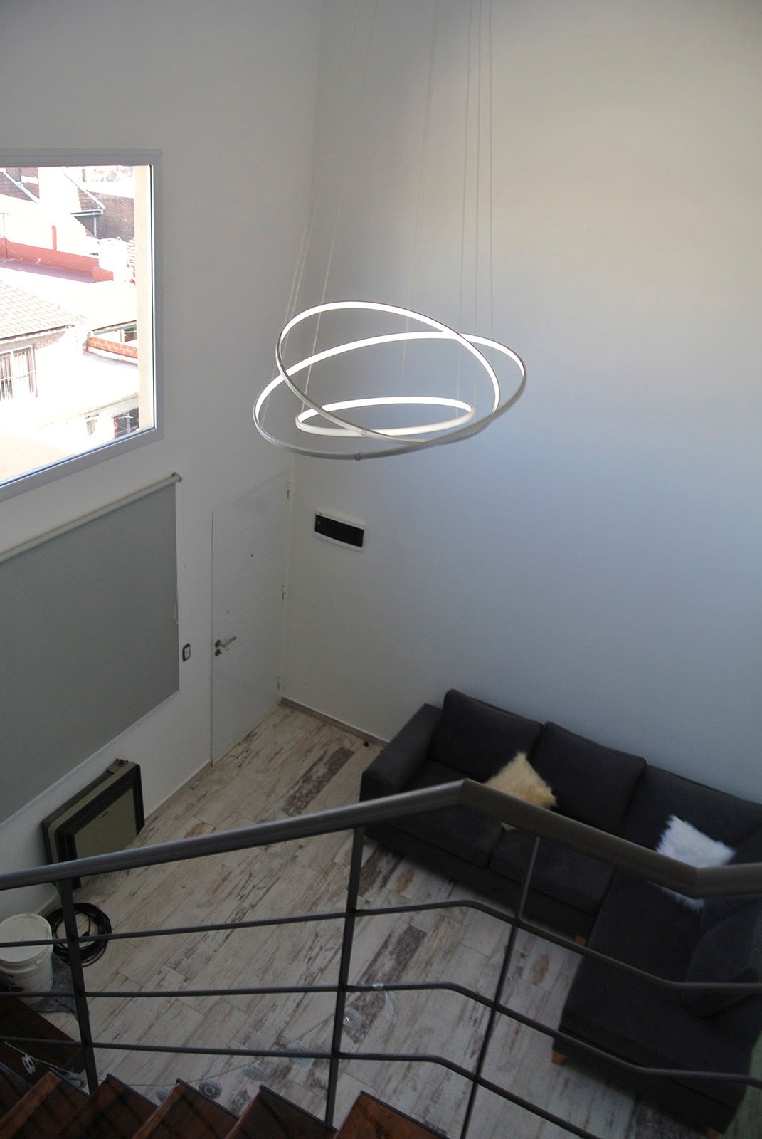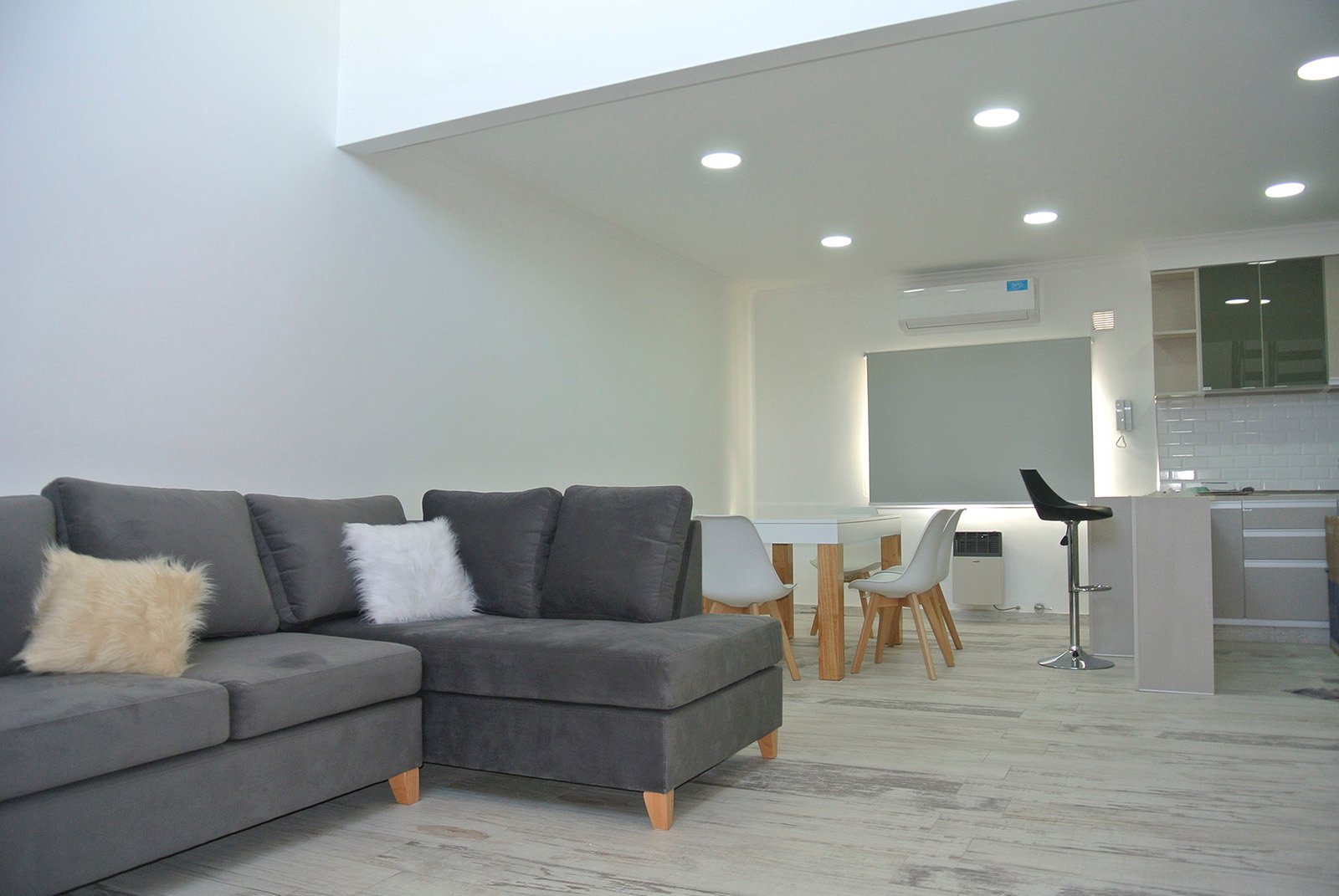 Se priorizó el espacio de living y comedor, generando una doble altura para lograr un espacio amplio y bien iluminado.