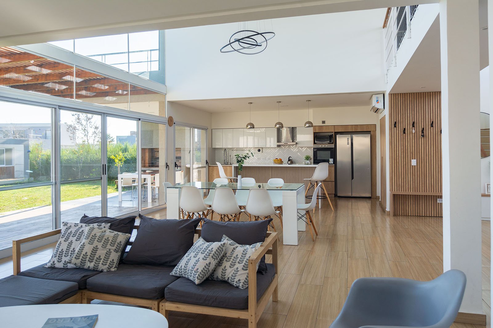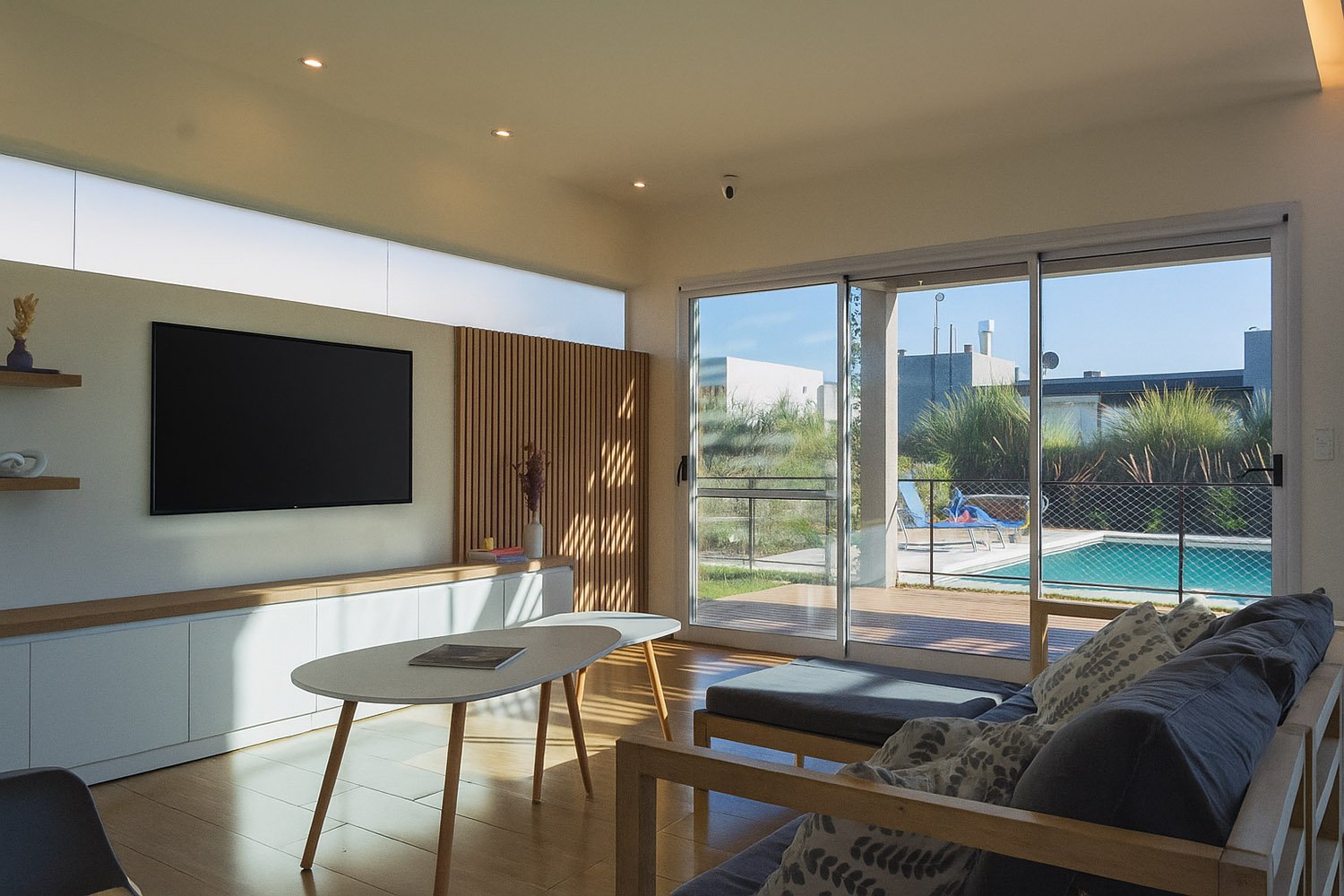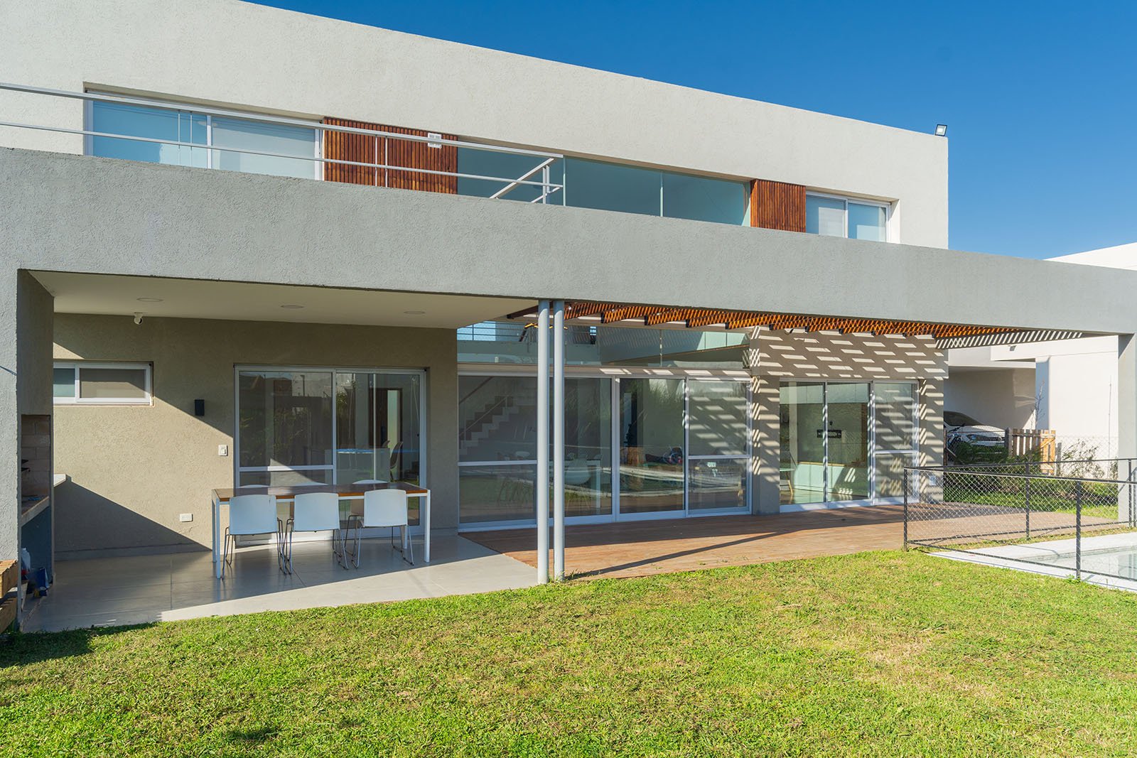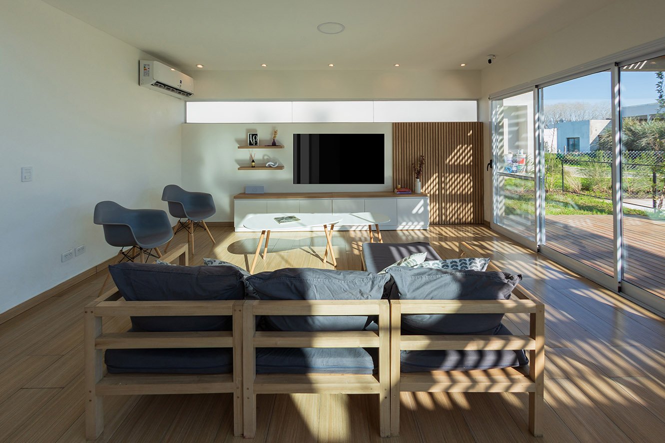 El diseño de la casa es moderno y minimalista. Se optó por utilizar colores claros, grandes ventanales y detalles en madera para generar calidez.