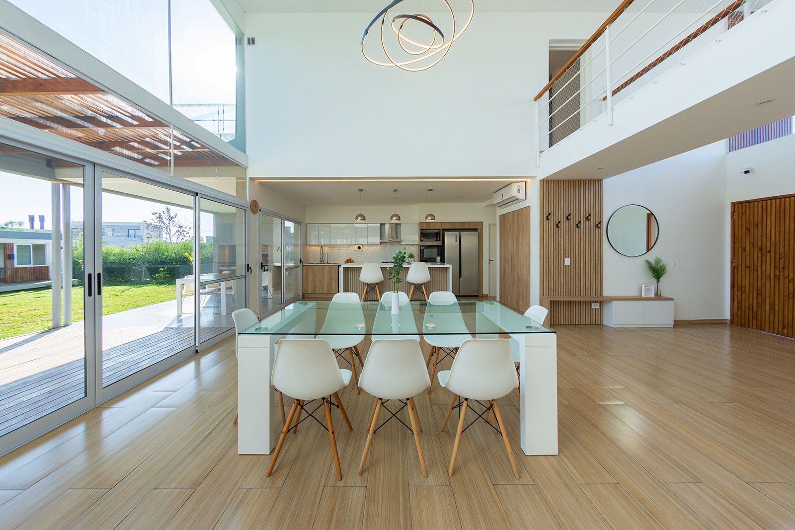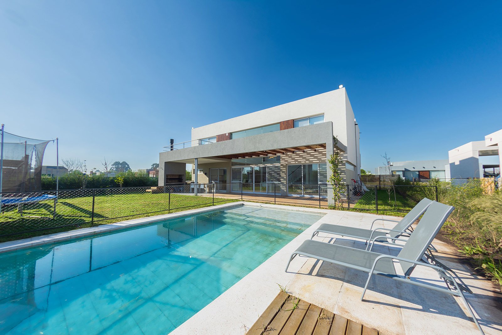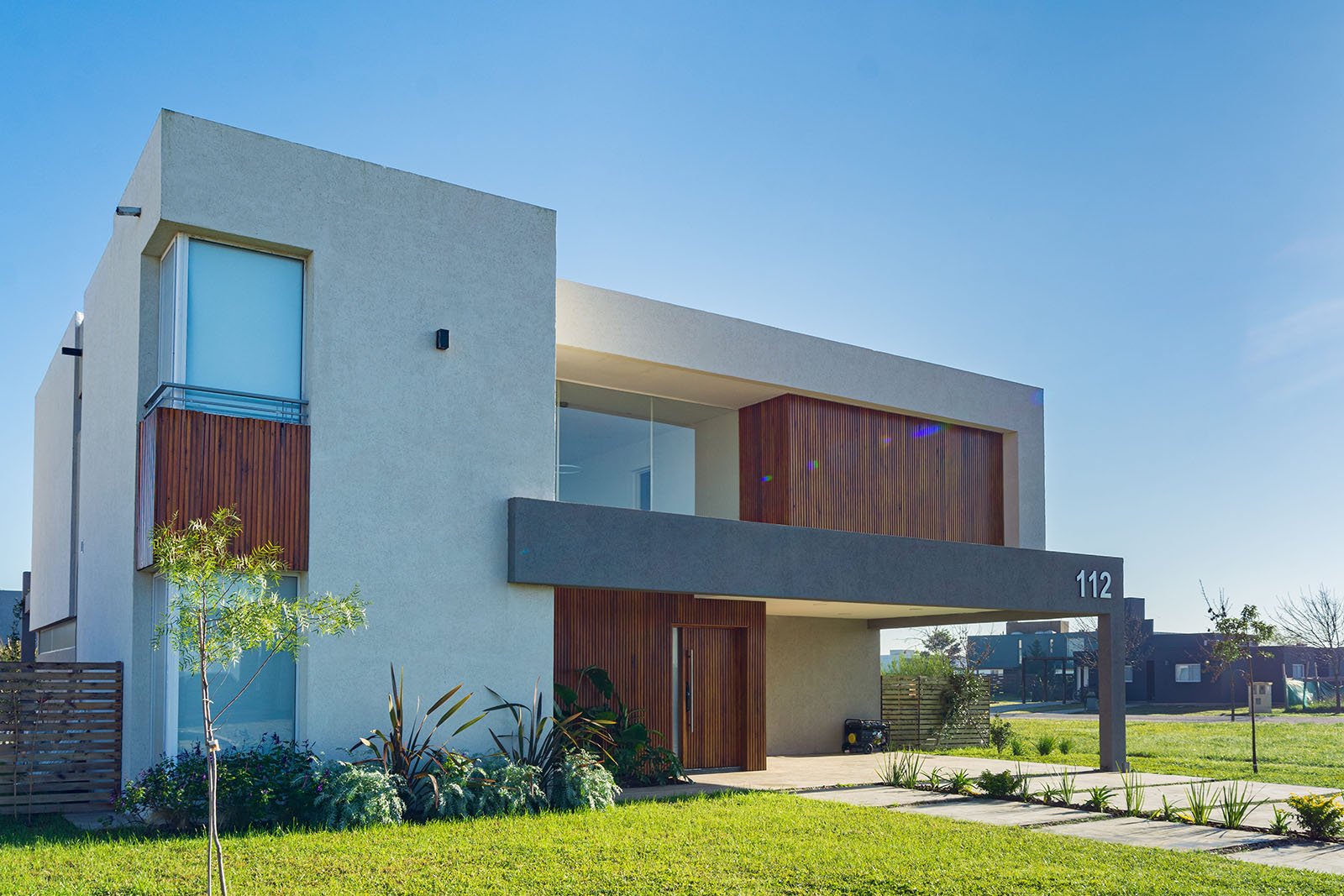 El diseño de la casa es moderno y minimalista. Se optó por utilizar colores claros, grandes ventanales y detalles en madera para generar calidez.