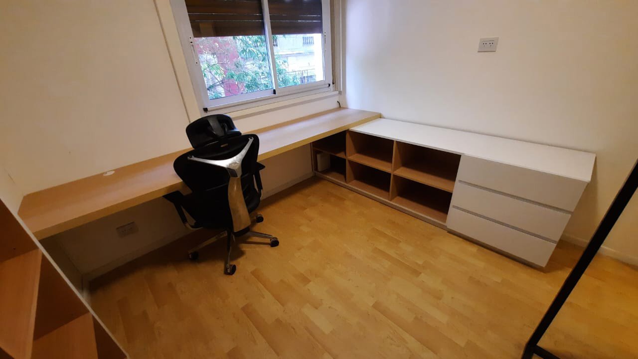 También se diseño mobiliario a medida para el escritorio. Siguiendo la línea moderna, se optó por materiales claros y un diseño funcional para optimizar el espacio.