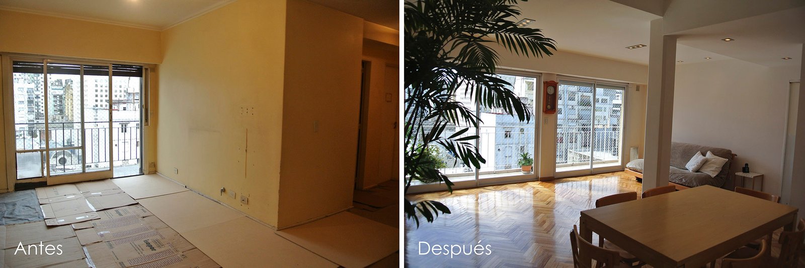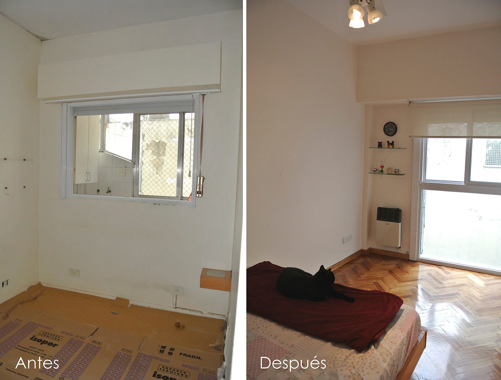 Frente a esto, se demolió un dormitorio que estaba inutilizado y se lo integró al living. Donde estaba la cocina, se ubicó el lavadero, y el espacio del anterior lavadero se integro al dormitorio, logrando la iluminación y ventilación adecuada.