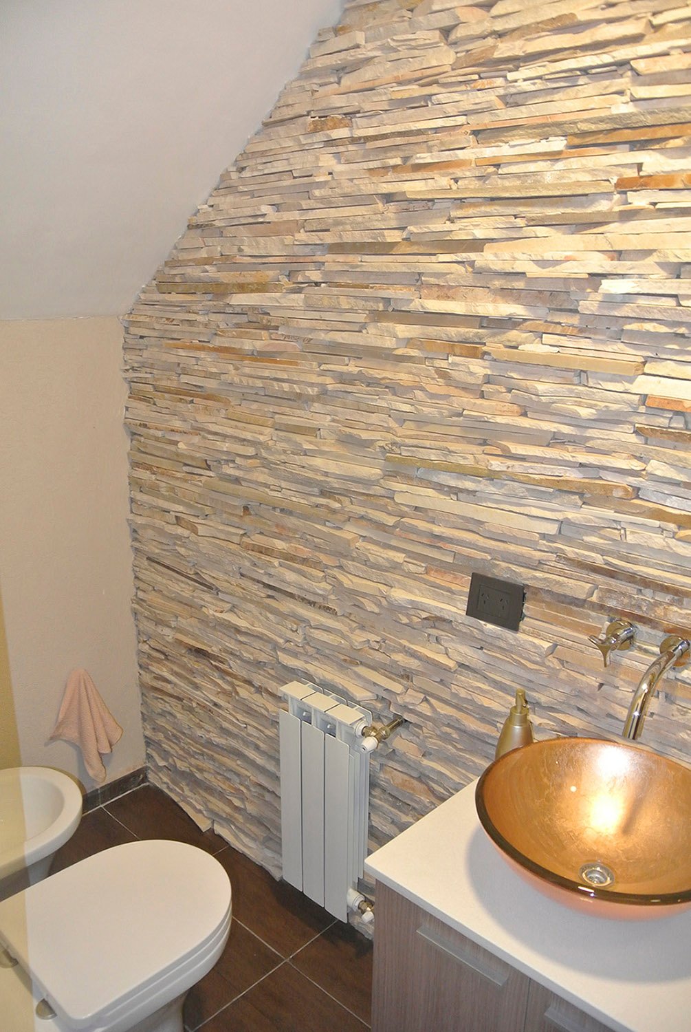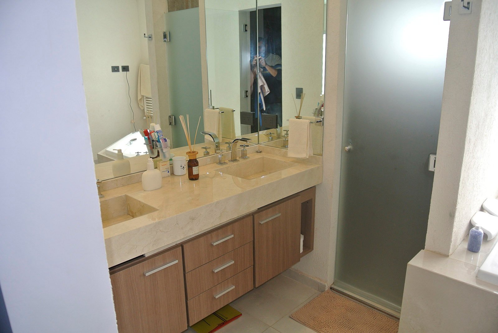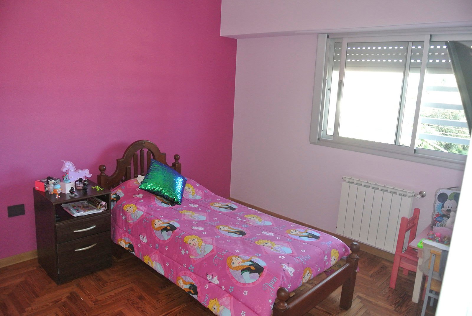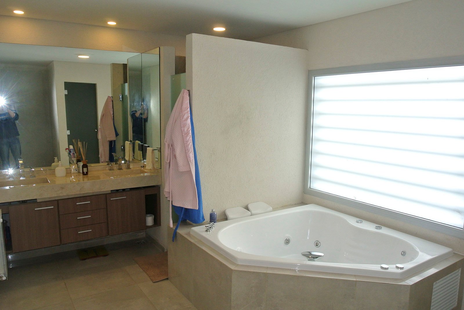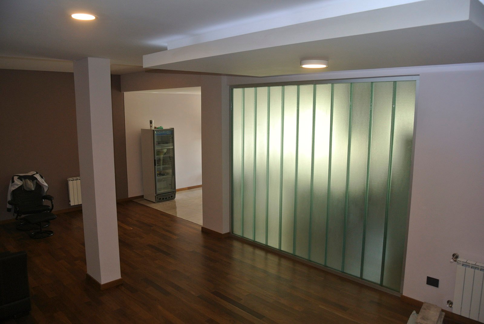 En planta baja se ubican el living, cocina, lavadero, comedor y cochera. Se amplió y se demolieron paredes para lograr espacios amplios. Se colocó un techo vidriado en el living para lograr buena iluminación, a su vez se restauró la pared de ladrillos. En planta alta se ubica el playroom, a pedido del cliente debería tener buenas dimensiones, y también los dormitorios. El matrimonial tiene su baño en suite, un amplio vestidor y terraza.