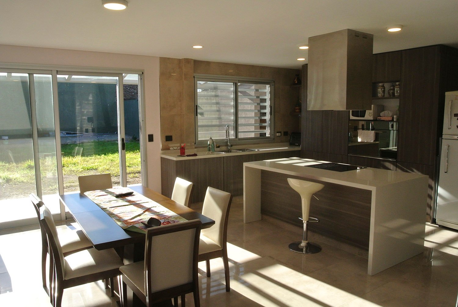 La premisa fue diseñar una casa moderna y minimalista. Se utilizaron materiales modernos, prevalece la utilización de vidrios como cerramientos para lograr buena iluminación. Se utilizó madera en los pisos para generar calidez.