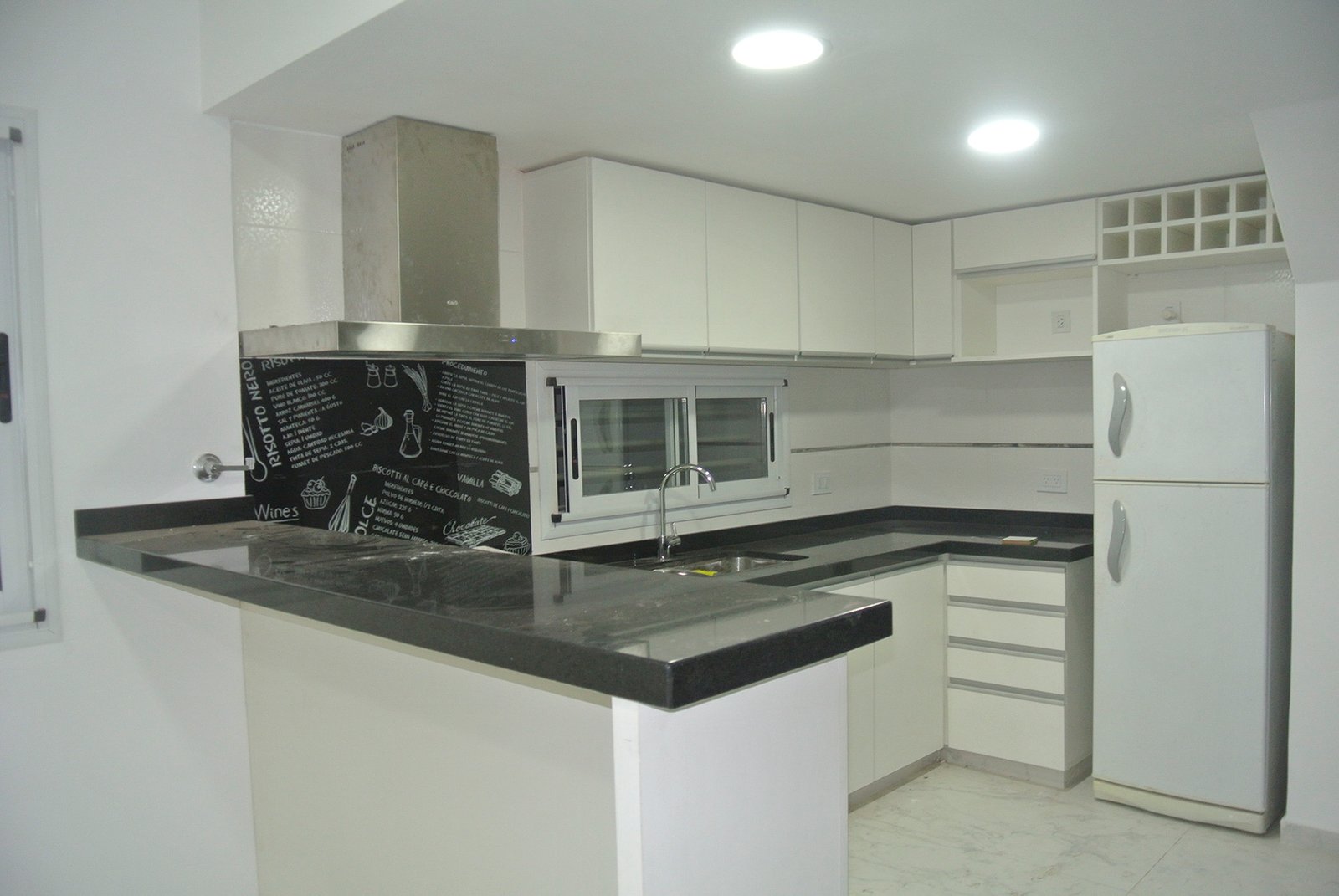 Se construyó una casa de 3 ambientes, con un amplio living-comedor con cocina integrada.