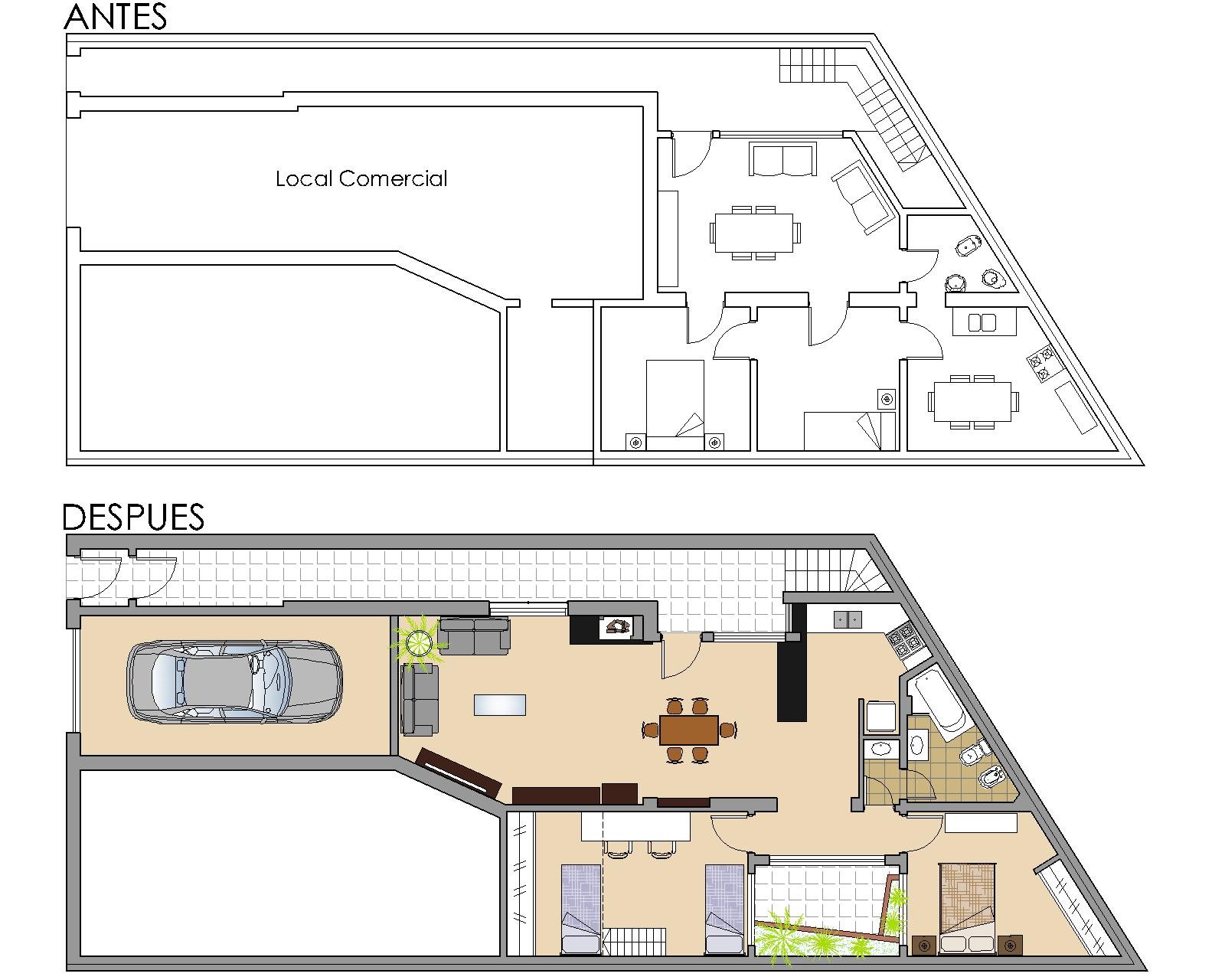 La distribución original no permitía la ventilación e iluminación natural de casi ninguno de sus ambientes, y al ser interno era muy oscuro.