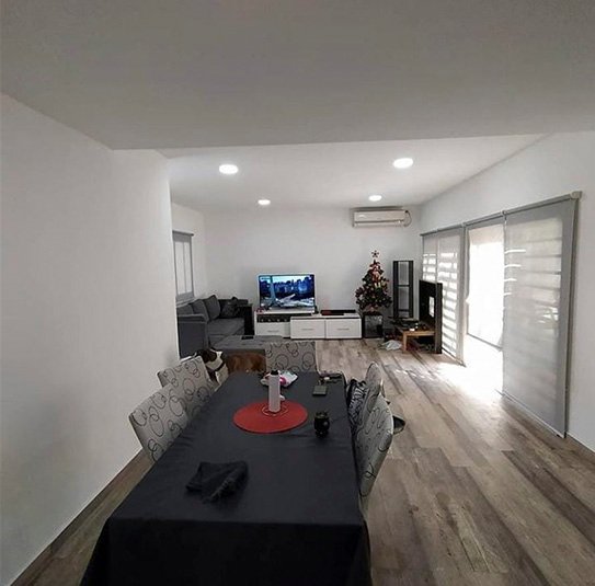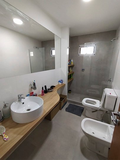 A su vez se cambió en acceso a la vivienda para poder entrar por el área social. Al contrafrente se contruyó galería con parrilla y una pileta.